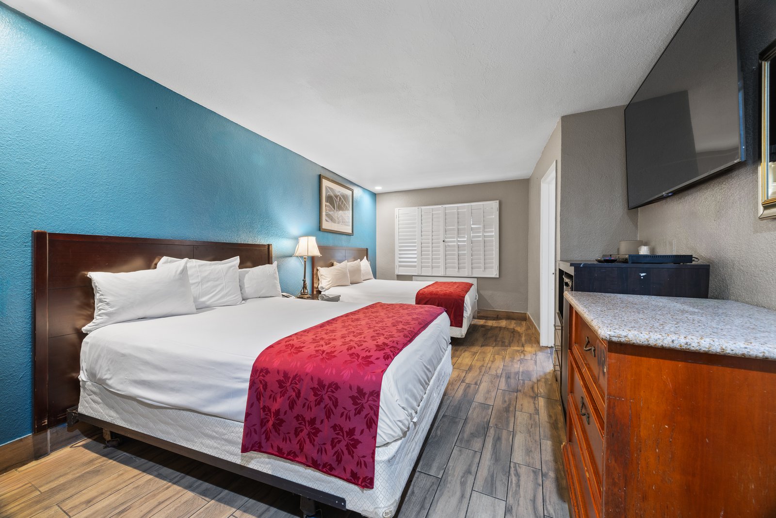Our Rooms King Room Hotel Rooms Perfect for solo travelers or couples, this comfortable room features a plush king-size bed, modern furnishings, and all the essentials for a relaxing stay. $ 95 per night Details Dual Queen Beds Room Hotel Rooms $ 105 per night Details Jacuzzi Suite $ 110 per night Details